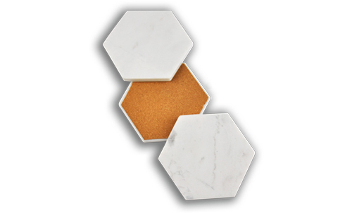 | • Made from real white marble with a cork backing to protect your furniture. |